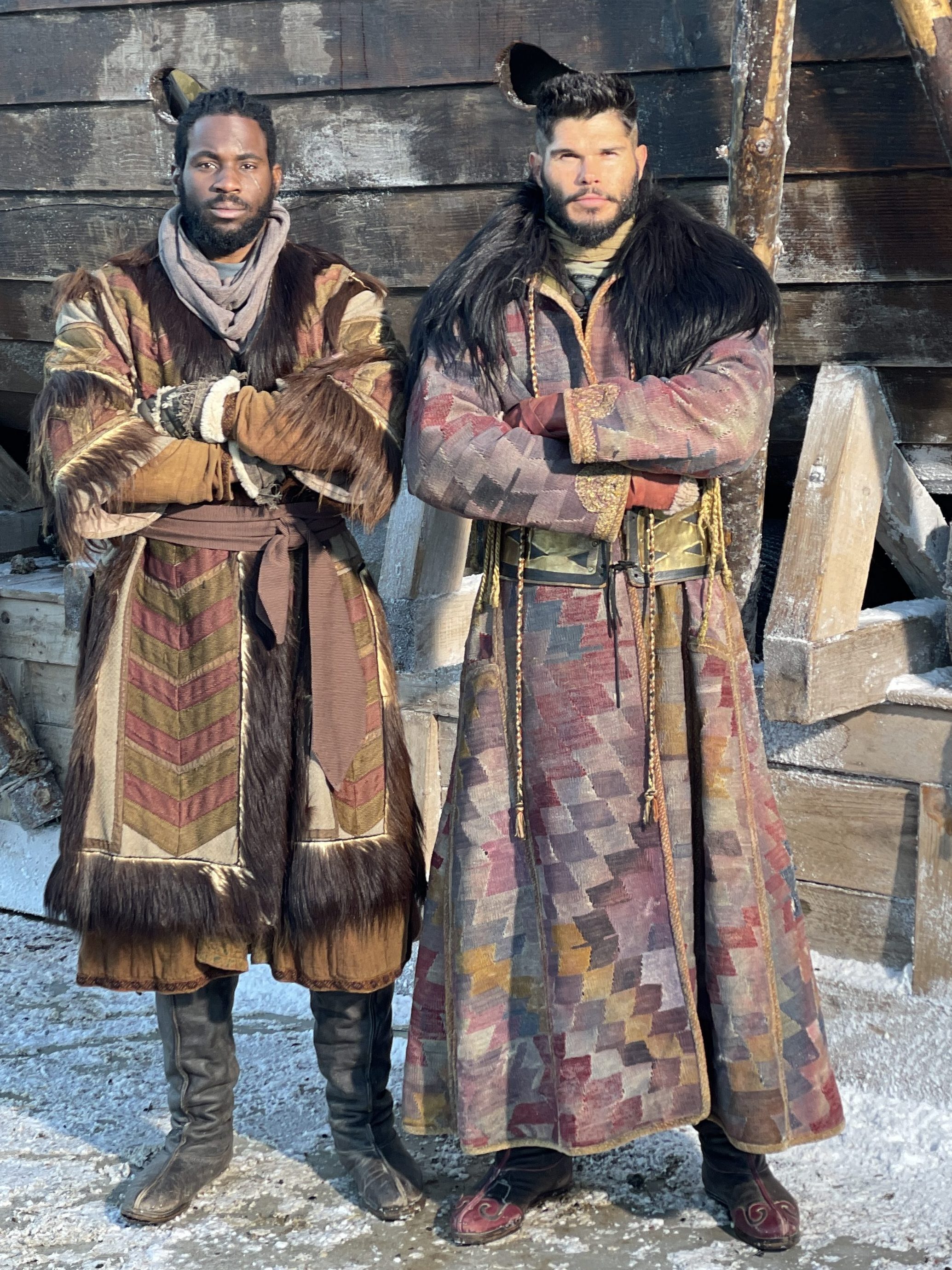 We meet Batu in episode 2, in his element, amid the loud and raucous fight pen, in Novgorod. Batu, a showman and conman, plus his partner, Kaysan, (played by Kayode Akinyemi) over the years had traveled north from Constantinople, using similar tactics of making money and living the travellers life, yet after the con goes wrong, Leif and Harald, played by Sam Corlett and Leo Suter, offer to work with them rather than what they should do, against them. The journey to Constantinople is a difficult and dangerous one, and working together as a team seems the only way.